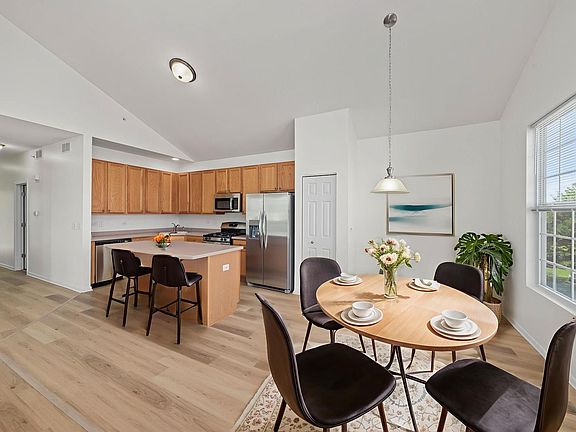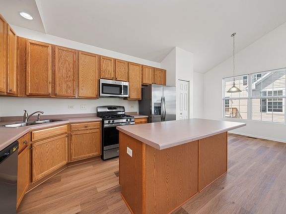 Step into comfort and style in this spacious raised ranch townhome, perfectly situated in the sought-after Mill Crossing at Grande Reserve. Offering over 2,000 square feet of living space, this home has been recently updated with fresh paint, new carpeting, and luxury vinyl plank flooring, giving it a bright and modern feel. The main level is highlighted by an open-concept design with vaulted ceilings, where the great room seamlessly connects the living, dining, and kitchen areas. The kitchen features stainless steel appliances, oak cabinetry, and a center island that provides additional workspace and seating, while the dining area opens to a private balcony-an ideal place to enjoy your morning coffee or evening unwind. Down the hall, the primary suite offers a generous walk-in closet and private bath, while the second bedroom, also with a walk-in closet, is served by a full hall bathroom. The finished lower level expands your living options with a large family room that can double as a home office, gym, or entertainment space, along with a third bedroom and an additional full bath-perfect for guests or extended family. A two-car attached garage with extra storage completes the home. Located close to Yorkville's shopping, dining, and recreation, this townhome blends comfort, flexibility, and convenience in a prime location.