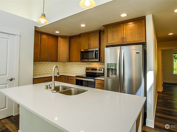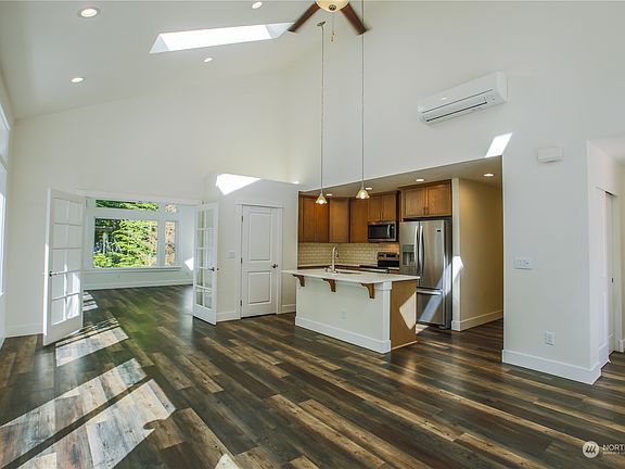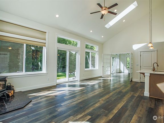 Beautiful, newer one-story home on enchanting, private 5+/- acres surrounded by trees, a seasonal pond, and plenty of sunlight. Soak up the serenity and privacy that surrounds you. This home features an open floor plan, vaulted ceilings, a bonus room, beautiful kitchen with shaker style cabinets, quartz counters, and stainless appliances including a washer and dryer. Wood stove, generator and hot tub complete your new, relaxing Whidbey lifestyle.