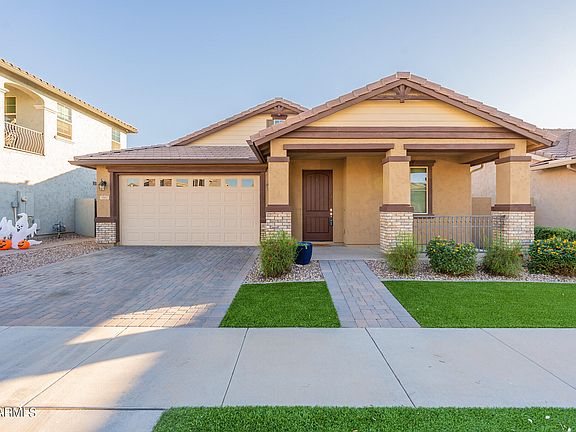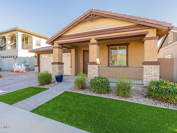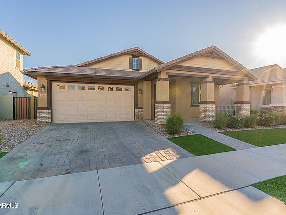 Home is built in 2017 and is nestled in desirable Cooley Station Community, Gilbert. This home features 2 car garage, 3 bedrooms with an office and a 2.5 bath. 1.5 miles from 202 and San Tan Village. Perfect location with plenty of golf, restaurants, parks and Frys Marketplace nearby. This home is well maintained and move-in ready. Front landscape is maintained by HOA. Oversized front door! Kitchen features upgraded granite countertops, cabinets and tile flooring. Huge sliding glass door that leads to low maintaince artificial turf backyard, with travertine tile and private pool. Pool has Wi-Fi connection to lights and pump. GE Slate Appliances included and Samsung washer and dryer. Upgraded master bathroom with full shower and granitera.