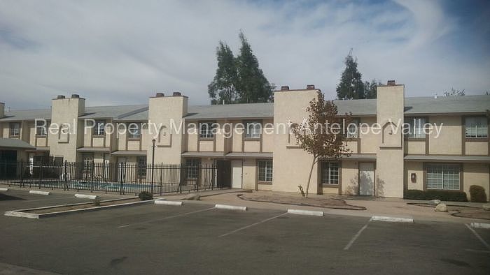 Beautiful townhouse style apartment in Palmdale. Large living room with fireplace, spacious kitchen with brand new stove, dishwasher, bright dining area with sliding door leading to small private patio; half bath downstairs; 3 bedrooms and 2 full baths upstairs; carpet, tile and laminate throughout unit. There are laundry facilities on the property as well as a pool. 3 bedroom units include a 1 car garage as well as an assigned covered parking space. NO PETS! Contact us to schedule a showing.