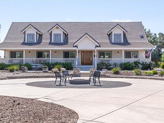 PRICE REDUCTION! Only one owner, built in 2004, custom ranch style home located in eastern Temecula wine country. Breathtaking, panoramic views of the surrounding valley, minutes from Temecula wineries. This beautiful home is 2450 square feet, and has covered front and back porches on a raised foundation with brand new Trex decking. It has 4 bedrooms, 2 ½ baths, with beautiful hard wood floors, and kitchen includes many upgrades: granite countertops, Wolf stove, and Subzero refrigerator. This home also has 2 fireplaces (never used) and boasts a detached 3 car garage, that includes an 800 square foot bonus room built on top of the garage. This beautiful Custom built home sits on 4.8 of usable acres. This property is suitable for horses, vineyards and many outdoor activities that you and your family can enjoy.