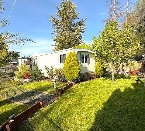 A wonderfully upgraded 3 bed, 2 bath home in a park open to all ages! LOW space rent on a large, nicely landscaped corner lot. New appliances, spacious living room with ductless heating and cooling. Convenient spacing with master bed and bath separated from remaining 2 bedrooms. Lovely backyard for relaxing and gardening. Park approval required. This is a MUST SEE!