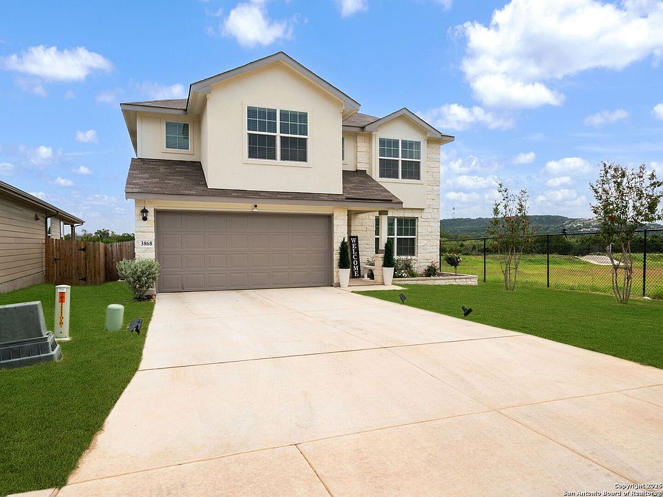 Looking for privacy but want the conveniences of a master-planned community? Look no further. This 5-bed, 2.5-bath home sits on a premium lot with NO rear neighbors and only 1 side neighbor. Located in Copper Canyon with top-rated schools and resort-style amenities just steps away. The spacious layout features high ceilings, a formal dining room with butler's pantry, and an open kitchen with a large island and ample cabinetry. The primary suite offers a separate tub/shower, dual vanities, and a large walk-in closet. Upstairs includes a bright loft and four secondary bedrooms. The yard is fully landscaped with irrigation. Features a smart home system with all builder warranties still in place. Pre-plumbed for water softener. Move-in ready and better than new with an added backyard shed!