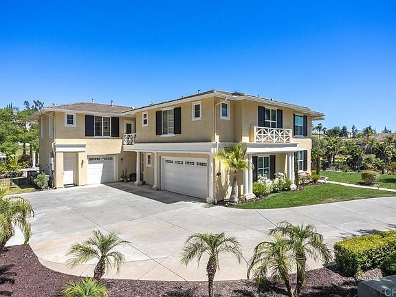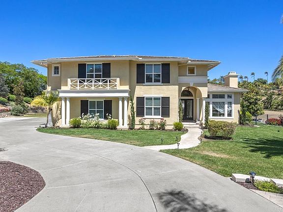 When you arrive at this magnificent 5 BR/4.5BA home w/ additional 1BR/1BA guest quarters with it's own sep. entrance, (above garage) in highly desirable estate community of Brook Hills, you will be met with meticulously maintained landscaped, gated, front entry! Set on over 2 acres of very gentle land, wrought iron fenced, with solar and pool/spa Land is suitable for orchard, vineyard, gardens. Gorgeous custom Upgraded,quality abounds inside with soaring ceilings, dramatic entry foyer with beautiful spiral staircase, formal living and dining rooms, Cozy family room with fireplace is adjacent to the impressive granite gourmet chef's kitchen with breakfast bar, built-in hutch cabinetry, butler's pantry and spacious breakfast nook. Primary BR retreat with fireplace, overlooks lovely pastoral country views, complete with large spa bath with soak tub and separate shower, and huge customized walk in closet with built-ins and glass enclosures for all your finery. Relax by the European inspired pool/spa, adjoining entertainment areas, patios, and colorful ornamentals or enjoy tending the raised garden beds & family fruit trees. Relaxing, peaceful views of the Fallbrook countryside. Exclusive Brook Hills gated community includes a beautiful stone French inspired clubhouse, rolling grassy areas, walking paths, a bridge over Koi pond and tennis/pickleball courts...such a picturesque setting where special gatherings are held. Reminiscent of French countryside, you will fall in love with the special ambiance this property and neighborhood affords!