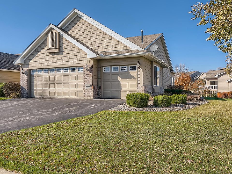 This meticulously maintained end-unit townhome is ready for you to move right into! This is truly one-level living at its finest. The spacious open floor plan features vaulted ceilings and plenty of natural light, and the main floor primary suite features a state of the art and recently remodeled bathroom featuring a luxurious walk-in shower and heated floors. The recently remodeled three season porch is the perfect place to enjoy the serene backyard views. Lower level is an entertainers dream featuring a bar and spacious family room. Two fireplaces, stainless steel appliances in the kitchen, and cherry floors and cabinets are just a few of the upgrades that make this unit so special. Many recent updates include all new decking, new closet in the third bedroom, new A/C, new dishwasher, 6 paneled doors throughout the home, new water heater and more!