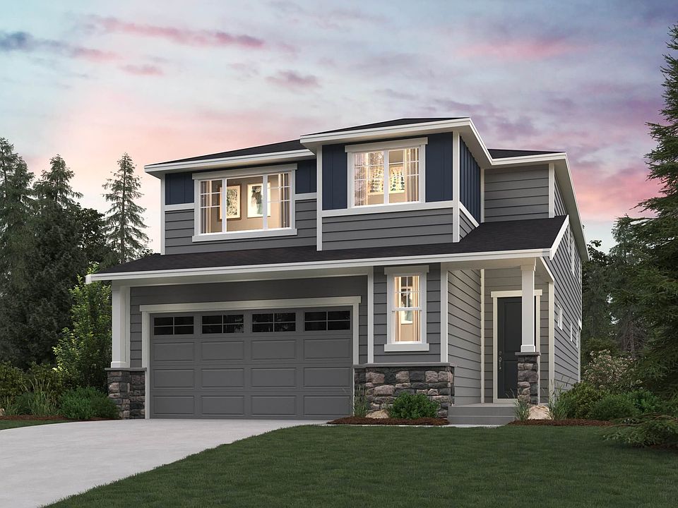 Home Details: Cast Iron Exterior Color Scheme (Actual color may differ from rendering) Elevation C 2-Bay Garage Introducing the Asher at Sinclair Ridge, a spacious 2,741 square-foot two-story home. The Asher welcomes you with a front porch that leads into an open-concept great room and dining area, complemented by a kitchen boasting an island and corner pantry. For added convenience, the main floor also houses a bedroom and full bathroom. Head upstairs to the second level, where you'll find a bonus room, laundry room, and four additional bedrooms-including the primary suite with its private en-suite bathroom, featuring a dual-sink vanity, free-standing bathtub, and spacious walk-in closet.