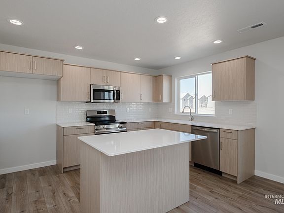 Fall in Love with Low Rates! Promotional rate as low as 2.99%. Ask a Sales Specialist for details! Enter into a brand new home in Meridian, Idaho and enjoy its benefits and stress free living! Enter inside the Tatom 2054 and feel immediately welcomed. The kitchen comes with stainless steel appliances and stylish solid surface countertops, adding both functionality and aesthetics. The kitchen flows seamlessly into the dining area, making it easy to entertain. The back yard feels like an extension of the home when it's easy to access right from the dining room. A formal living room at the front of the home and the main living room in the rear provide multiple living spaces to host guests in or relax. The upper level primary suite is accompanied by the laundry room and three additional bedrooms. The fourth bedroom offers a walk-in closet for extra clothes or storage. Photos are of the actual home!