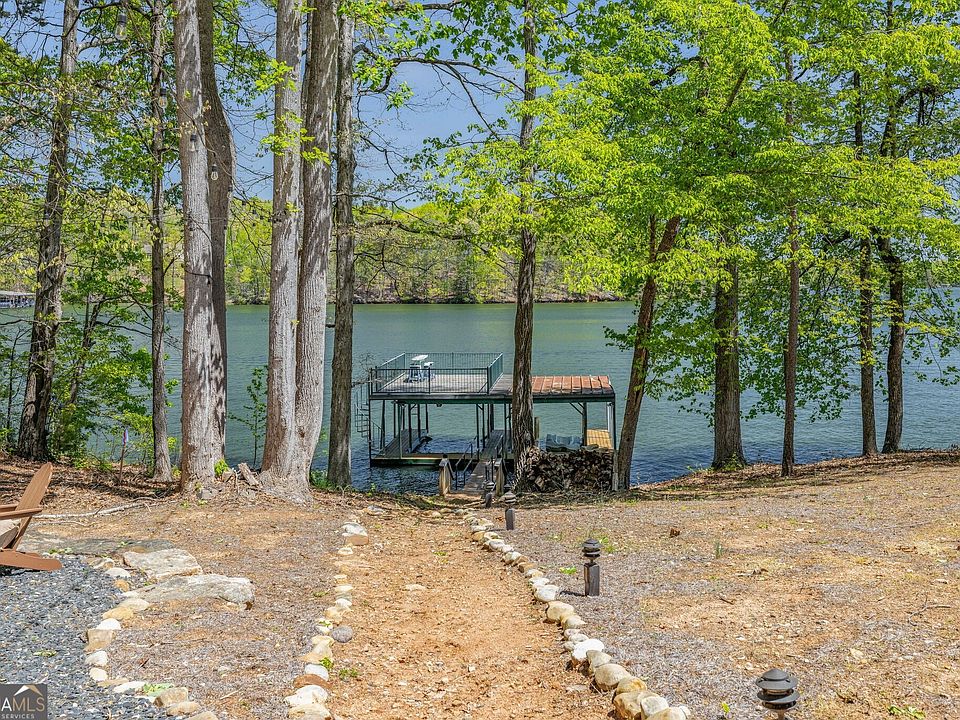 This lakefront property is situated along the shores of Lake Lanier, offering breathtaking big-water views and a gentle, only a few steps to a deep-water double-slip dock. Located on a peaceful private road, this serene retreat if the escape you've been looking for. Whether additions, looking for the perfect setting for a new build, or simply enjoying the existing home as is, this is a unique opportunity on Lanier. The existing home offers opportunity for expansion on all sides, and features open-concept kitchen with granite countertops, a spacious island, and ample cabinetry and workspace-ideal for entertaining or quiet evenings at home. An abundance of windows flood the home with natural light and frame the stunning lake views, seamlessly bringing the outdoors inside. The main level offers two bedrooms and a full bath, while the entire upper level is dedicated to a private primary suite featuring a beautifully renovated en-suite bath with a custom-tiled shower. Just a short drive or boat ride to Chattahoochee Golf & Country Club, grocery stores, and only 5 miles from downtown Gainesville dining and entertainment.