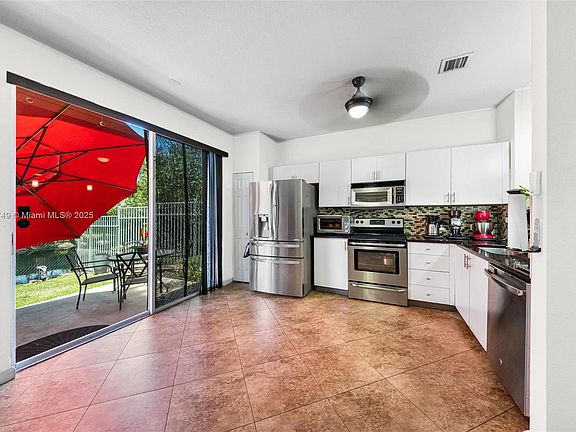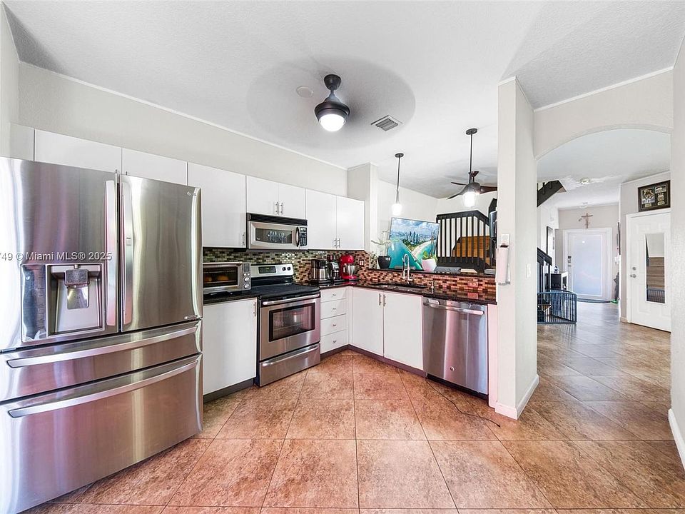 Light-filled Spacious 4BD/2.5BA corner townhome located on a dead end street with a large, fenced large backyard and serene water view. The open-concept layout features freshly painted kitchen, brand-new roof & gutters (2025), impact windows upstairs and garage door. Interior highlights include large tile flooring downstairs and bamboo laminate upstairs, updated bathrooms, and a generous primary suite with a walk-in closet. Appliances are updated and newer. Low-fee HOA includes ADT security and scheduled exterior painting in 2026. Conveniently located near parks, schools, and city community amenities.