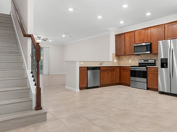 Welcome to this beautifully designed townhome located in the highly desirable Sommerset Crossing Community, just minutes from Medical City, Lake Nona, and Orlando International Airport. This location is ideal for healthcare professionals and anyone seeking convenience and growth potential. Step inside to discover an open-concept floor plan filled with natural light. The modern kitchen features quartz countertops, stainless steel appliances, and ample cabinetry. The gathering room flows seamlessly into the screened lanai through large sliding glass doors, creating a bright and comfortable space perfect for entertaining or relaxing. Enjoy a low-maintenance lifestyle in a community that offers comfort, accessibility, and proximity to major employers, shopping, and dining