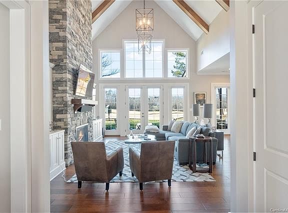 Stunning, top quality construction overlooking the #5 Tee Box of the Robert Trent Jones course at Rock Barn! Custom finished by Stan Whittington, this gorgeous home can be sold completely furnished and is totally move-in ready! Offering main-level living, this incredible home features an open layout with two-story great room and a wall of windows overlooking the golf course. The crisp white kitchen has a center island and adjoining dining area, laundry room, & exit to the double garage. The master suite overlooks the golf course and has a private bath with soaking tub, tiled shower, double vanity, and large walk-in closet. The upper level features two additional bedroom suites with private bathrooms and a bonus room over the garage. Enjoy evenings on the back patio or screened porch watching the golfers play. Custom designed for aging in place with handicap accessibility in mind. HOA Dues cover exterior yard maintenance, $500 per quarter. Community golf, tennis, swimming, spa, & more!