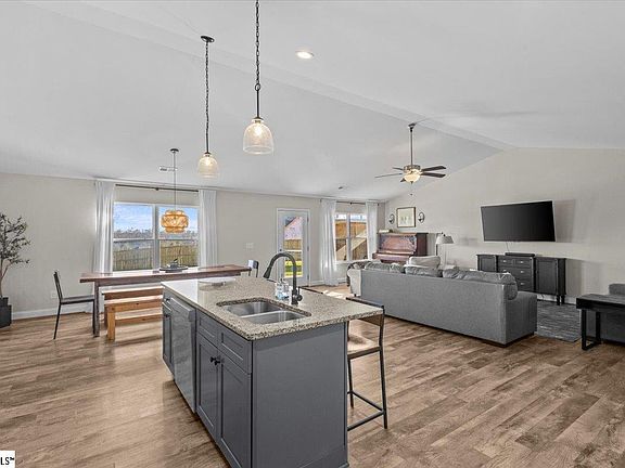 Tucked away on nearly an acre, 387 Ben Johnson Road offers a home with room to grow. Built in 2019, this 3-bedroom, 2-bathroom home (with an extra room above the garage) feels brand new, combining contemporary design with thoughtful features that make it stand out. Inside, the open layout with its vaulted ceilings connects the kitchen, living, and dining areas, creating a welcoming and spacious feel. The kitchen boasts a modern yet cozy design, offering clear sightlines over the island into the heart of the home. The primary suite is generously sized, with room for a king bed and sitting area, and features an en-suite bathroom with double sinks, a fully-tiled shower, and a walk-in closet. A versatile room above the garage provides the perfect space for a potential office, guest room, or even a fourth bedroom. Situated on 0.98 acres, the nearly fully-fenced yard offers incredible potential—imagine building a pool, cultivating a mini-farm, or simply enjoying the space to run and play. A covered porch and sauna add to the home’s outdoor appeal (the owners built the sauna for their enjoyment, but are willing to remove if the buyer prefers). Tucked off the main road, this property feels private while remaining conveniently located just 15 minutes from downtown Greer, with easy access to the mountains and everyday essentials. 387 Ben Johnson Road invites you to enjoy a home that offers room to grow—ideal for kids to roam, outdoor hobbies, or even your own mini-farm retreat. Schedule your showing today and see how this space could become yours!