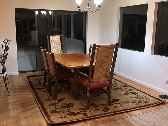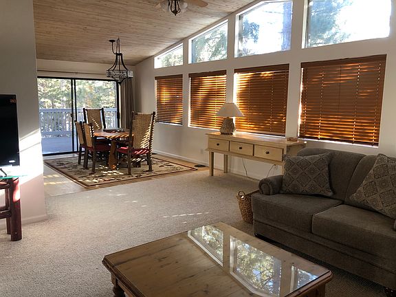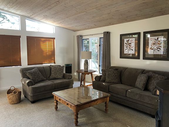 Available for six month lease. Owner pays snow removal from roof and driveway. Tenant pays all other utilities, including mandatory electricity, propane, and water, plus optional cable (no satellite dish allowed), internet, phone. Tenant pays Mammoth Waste Disposal fee for access to local trash/recycling center. Tenant must keep upstairs deck and entry porch cleared of snow and must maintain minimum heat temp inside house to prevent freezing of pipes. Security deposit and first month's rent due at lease signing. No pets. No smoking of any kind inside building or on property.