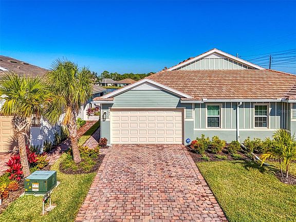 Welcome to this like-new WATERFRONT villa in the highly desirable Palencia community of North Venice! With low monthly fees and no CDD, this home shows great long term value. This well-maintained 2-bedroom, 2-bathroom villa includes a spacious den featuring glass French doors for additional flexibility and privacy. The open-concept floor plan showcases beautiful water views throughout! High end features including ALL IMPACT windows and glass sliding doors for peace of mind. A chef-inspired kitchen with quartz countertops, tile backsplash, stainless steel appliances, under-cabinet lighting, and soft-close cabinetry with pull-out drawers. Two separate kitchen pantries including one upgraded with California closets. Tile plank flooring throughout all the main living areas, den, kitchen, and bathrooms. The primary bedroom is large with newer luxury vinyl plank flooring, en-suite bath with walk in shower, and a generous walk-in closet updated with California closets for great storage. Step outside to your cozy lanai, perfect for enjoying Florida’s sunshine and wonderful lake views. Other great updates include new screens and frames for all windows, gutters around whole villa, remote control fans throughout, and SMART home features including doorbell, thermostat, front door lock, and garage opener. Palencia is a great low cost and maintenance free community featuring lawn care PLUS a wonderful community pool with clubhouse and fitness. The community also features bocce ball, walking trails, and multiple dog runs. A convenient North Venice location with quick access to i75, shopping, and dining. Plus quick access to Downtown Venice and Gulf Coast Beaches. Don’t miss the chance to make this waterfront retreat your new home. Schedule your showing today!