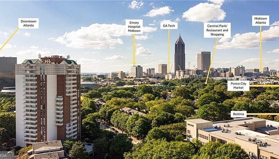 Seller has moved out of state for work, freshly painted August 2025, and the seller is SUPER motivated to sell, make us an offer! Now's the time to make your move-this recent market shift puts the power back in the buyer's hands, especially when it comes to scoring a move-in ready starter condo like this one! This condo qualifies for up to $45K in grant money to help make homeownership both affordable and achievable. Step into city living at its finest in this bright and welcoming ground-floor condo. The new front steps and charming porch lead you into a light-filled space with a large entry foyer and spacious hall closet. The open-concept living and dining area flows seamlessly into a well-appointed galley kitchen-freshly painted with a brand-new faucet and garbage disposal, and ready for you to host your next holiday dinner party. Light bamboo flooring extends throughout, creating a warm, inviting feel. Step outside to your large covered patio, perfect for morning coffee or evening relaxation. Storage is no issue here-be sure to check out all the generous hallway closets, plus an in-unit washer and dryer neatly tucked away for added convenience. The spacious bathroom features an expansive double vanity, new faucets, updated lighting, and even more storage. Primary bedroom fits a king-sized bed and includes an impressive wall-to-wall closet. Secondary bedroom provides flexible space, whether you need a guest room, office, or cozy den. Community Amenities include 24/7 concierge service, junior Olympic-sized pool, fully equipped gym, community room with a full kitchen, beautiful landscaping, dog-friendly greenspace, and scenic walking trails. Your dedicated parking spot is directly down the stairwell, conveniently close to your unit and right next to the mailboxes. This centrally located community provides easy access to all major highways, making trips to downtown, midtown, and beyond a breeze. And with the BeltLine, Ponce City Market, Freedom Park