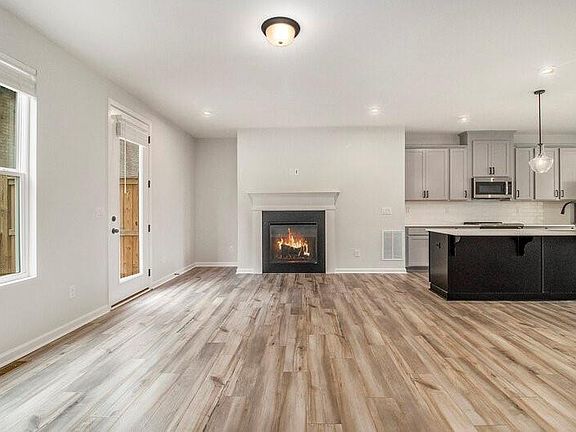 Cozy fireplaceGrey shaker-style cabinetsTwo-car garagePrivate patioPrivate rear deckSpacious primary suiteAdditional flex room