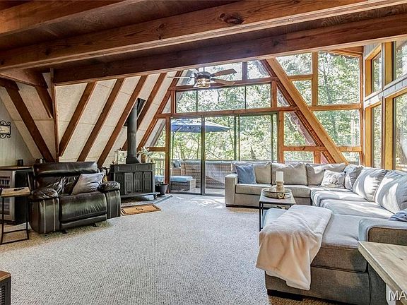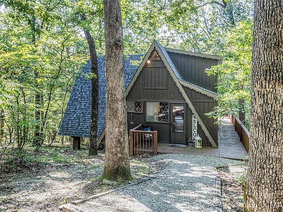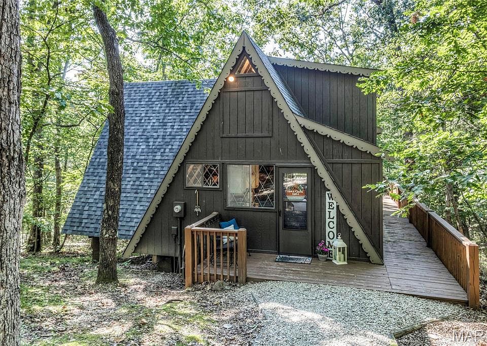 Beautiful chalet surrounded by a gorgeous wooded lot for amazing privacy & tranquility.The open floor plan features a great rm with floor to ceiling windows to allow in plenty of light & nature, a wood burning stove & sliding glass door that leads to your oversized deck perfect for entertaining.Kitchen has white cabinets, plenty of storage including a pantry & newer SS appls.There is a large bedrm on the main level w/ lots of natural light & a full bath.Up stairs you will find a loft area for addl sleeping, another full bath & large bedrm w/vaulted ceiling & surrounded by windows a delight to wake up to.Chalet has all new modern lighting, freshly painted through out, newer roof, outdoor shower, shed for storage & a fire pit for enjoying those relaxing days & evenings.Work away from the office w/highspeed internet & enjoy all the amenities: hiking, beaches, fishing lakes, swimming pool, pickleball, golf & more.Chalet can come with all appliances, canoe, kayak and 16ft pontoon.