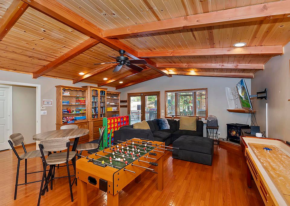 A Centrally Located Big Bear Property In Eagle Point That Offers So Much. 4 Large Bedrooms; 2 Are Downstairs With 2 Baths And Upstairs Are 2 More With 2 Full Baths (One Is Ensuite In The Bunk Bed Room). The Open Floor Plan Includes A Living Room With Fireplace, Updated Kitchen, Dining Area And Big Game Room, Also With Fireplace And Plenty Of Room For Games, Watching Movies And Has Direct Access To Back Deck With Hot Tub, Entertainment Area And A Separate Creative Shed. Separate Laundry Room With Folding Area, Sink, Ironing Board And More Cabinets, Wood Floors, Updated Windows, Newer Appliances, Skylights, Direct Access Garage And Big Closets With Plenty Of Storage. Fenced Backyard And Unbelievable Location For The Lake, Parks, Big Bear Lake Village, Slopes, Golf Course, Etc. The Front And Back Yards Are Low Maintenance And Ready For Summer Fun.