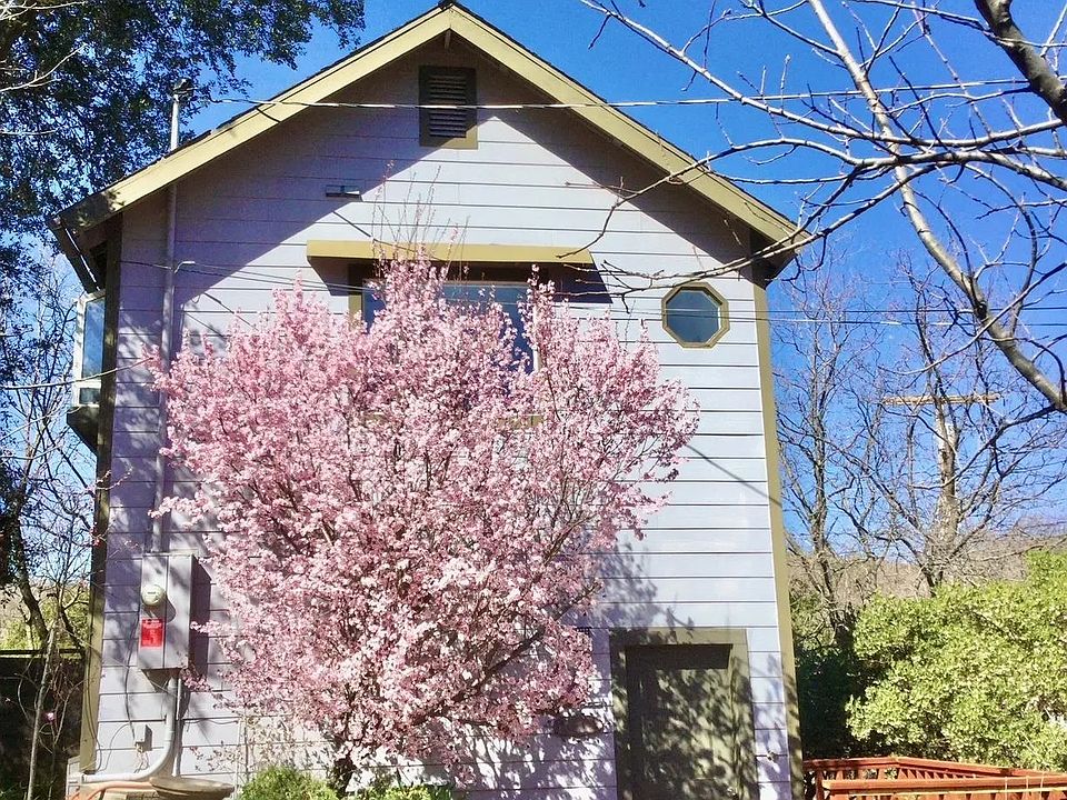 Wood-burning stoveSpace-saving murphy bedBeautifully landscaped gardensWindow ac unitCozy tile bathroom