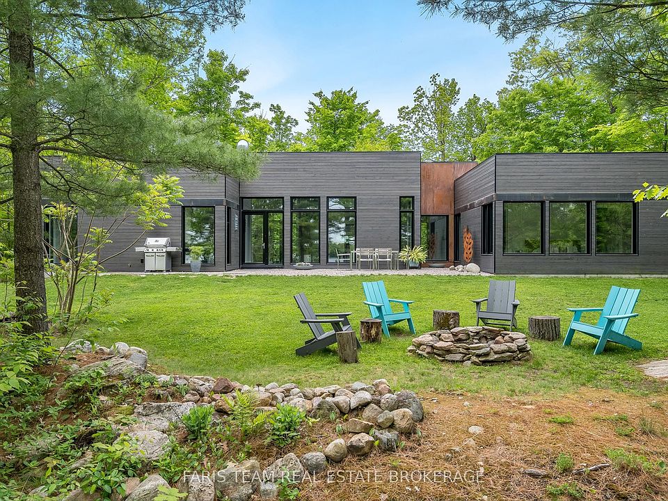 Top 5 Reasons You Will Love This Home: 1) Constructed with state-of-the-art BONE Structure technology boasting a steel and concrete frame for unmatched durability, superior energy efficiency, and minimal maintenance, outperforming traditional builds in every way 2) Designed with sustainability and luxury in mind showcasing high-quality internal finishes, varying roof heights, and an eco-conscious design featuring insulated panels, airtight construction, triple glazed windows, and a passive heating and cooling system, reducing energy costs while promoting a greener lifestyle 3) Expansive kerfed floor-to-ceiling windows flooding the open-concept interior with natural light, offering breathtaking water views, granite ridge outcroppings, and a wooded lot that seamlessly integrates the home with its stunning surroundings 4) Sleek contemporary design combined with warm natural materials. Gourmet kitchen with premium finishes, sophisticated flooring, and thoughtful architectural details, providing an inviting living space 5) Set in a peaceful, nature-rich environment with year-round road access, just minutes from Highway 400, this property offers an exclusive escape from city life while remaining close to essential amenities, with an abundance of recreational activities nearby, ideal for both a full-time residence or luxury retreat. 2,434 fin.sq.ft.