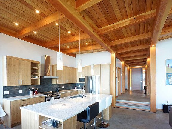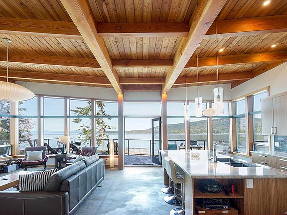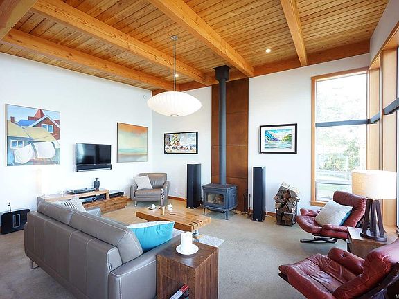 Walk-on waterfrontAluminum-clad exteriorWarm fir timbersStone countertopsWood stoveIn-floor heatingCovered parking