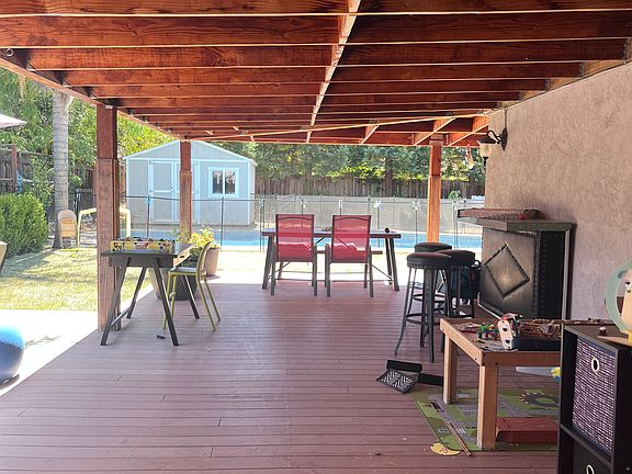 Inside, you'll find a fully stocked kitchen with a cozy breakfast nook, generous gathering areas at the front of the home, and a washer/dryer with a second fridge in the garage. Though toys will be stored away, there's a play structure in the backyard a lovely reminder that this home has raised three happy children.