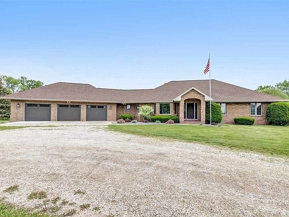 This beautiful all brick ranch set on 6 acres is sure to please! Kitchen with Cherry cabinets, center island, granite countertops, stainless steel appliances & gorgeous real hardwood floors, living room with tray ceiling, brick wood-burning fireplace, hardwood flooring & patio doors to spacious deck, 1st-floor office with built-ins, 1st-floor laundry and basement laundry rooms, master suite with tray ceiling & walk-in closet, 6 panel doors, crown moldings, 3 stall garage w/basement entry. Brand new 30 by 56 dettached shop built in 2018. Brand new roof in 2019 (complete tear off and reshingle and added ridge venting)