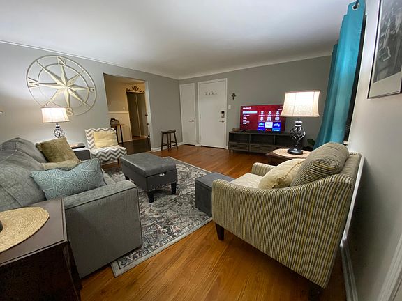 The apartment is UNIT #2 in a 4-family brick building. The other 3 units are Airbnb's which are mostly rented on weekends. The property is clean, safe & well maintained. We do not allow pets, parties or smoking in any of our units. There are steps to the front security door entrance & 6 steps to the "first floor" units, which is where unit 2 is located. Each unit has its own small balcony off the living-room with seating for 2. This unit also includes 1/2 of the two car garage. (You would park on the far left side, so you can easily exit the garage if there are guests in unit 3 above you.) Additional storage space is available if needed within the basement or garage.