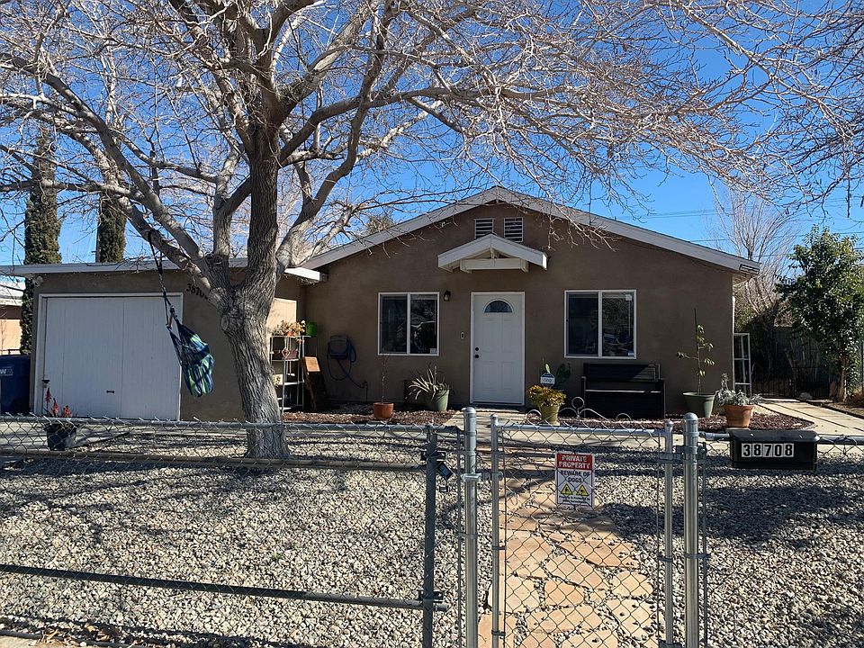 **DO NOT DISTURB CURRENT TENANT Great single story home where EVERYTHING was updated 2 years ago. Floor plan offers 4 bedrooms, 2 bathrooms, open kitchen to dining room and living room, closets in every bedroom, swamp cooler, ceiling fans, wall heater, laundry hook ups in kitchen. Laminate floors, tile in bathrooms, carpet in bedrooms. Mature trees in front and back yards. New backyard concrete.1 car garage. Extra wide driveway. Close to freeway 14, schools and shopping Small dogs allowed. HABLO ESPANOL MOVE IN COST: 1st month rent + security deposit = $4400.00 Tenant to pay for all utilities: gas, power, water, garbage. Tenant is responsible of the grounds maintenance. MOVE IN COST: 1st month rent + security deposit = $4400.00. Security deposit is not the last month rent. Tenant to be able to prove a combined household income of 2 times the monthly rent FICO score to be 670 and above to be considered House is not approved for any kind of assistance vouchers