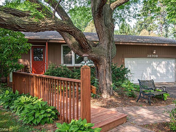 Affordable 4 bedroom/2 bath rambler in town on wooded, private, gardenlike setting. Remodeled kitchen with many updates including stainless steel appliances, gorgeous cabinetry, and hardwood flooring. 4 season porch also updated with several windows for viewing the private backyard. Newer furnace and AC and home has a whole house fan. 3 bedrooms and full bath on the main level. Lower-level has a large 4th bedroom and a game room/flex room that could be used as an office, hobby room, or 5th non-legal bedroom. Lower-level laundry/storage room has a walkout to the backyard. Very picturesque yard with lots of plants, garden areas, and mature trees to enjoy. Convenient in town location close to schools, parks, restaurants, shopping, Quik Trip, bike and walking paths, golfing, and I35.
