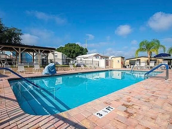 Why pay more? This beautiful home is turn key and ready to move in immediately. Completely remodeled from top to bottom. Kitchen and full bath recently updated. All new top grade vynal plank flooring throughout. New led lighting and blinds. Freshly painted interior. All plumbing updated under all sinks. Newer hurricane resistant front door just installed. All windows are 3 years newer. Owner will even purchase you a brand new cost effective cool mini split system. Home is situated on a beautiful landscaped larger lot with plenty of green space for extra parking. All newer patio furniture and barbecue grill convey with purchase as well. Exterior horizontal shed which is great for extra storage. All new 5 inch downspouts. Double metal roof. All newer exterior lighting. Newer exterior skirting around entire home. Large exterior patio to enjoy the Florida sunshine. Located in a beautiful, safe, and clean community called Bakers Acres RV resort. Can be approved at 45 plus. 2 pets ok! Golf cart friendly. A very active community with every amazing amenitie you can think of. Lot rent includes everything except electric!!!. All interior appliances also convey with home. Located 30 minutes away from Tampa. 50 minutes from Orlando. 35 minutes to the Gulf beaches. Minutes to tons of shopping and Advent Hospital. Hurry homes in this price range beautifully furnished sell quickly.