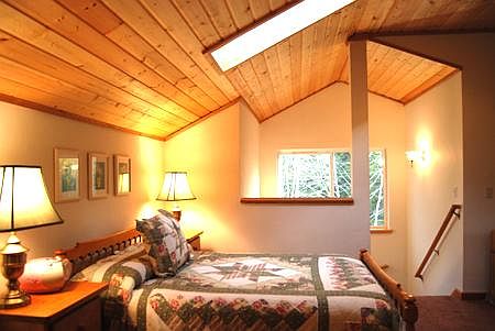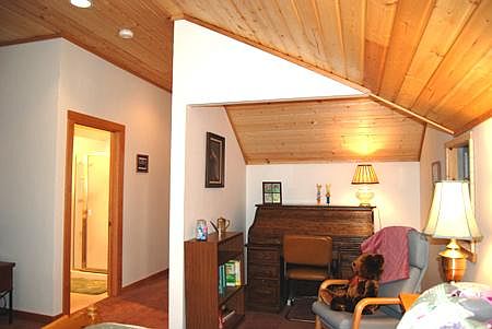This unfurnished home sits on a rural 30 acre family estate and features a 2 story, 1 BR / 2 BA's with a great room upstairs and a den downstairs that can double as an den, library, music TV room, and or guest room. There is also a bonus room downstairs. Although it is a large home it has a small septic system and therefore can only handle two people and can not be rented to a larger family. The house has beautiful Beams, Timbers, Pine, Hickory, skylights and built in book shelves in the stairway. There is a shop/Pole Barn and a nice yard that is maintained by the tenant. It sits on a large wooded parcel that has a stream running thru the back of the property giving you plenty of seclusion. This house Has a small septic system and therefore cannot accommodate a large family but needs to be for 1 or 2 people. It is a non smoking house and we do not accept Pets. Double french doors open on a deck that wraps around three sides of the house. There is a picnic table and fire pit in the large yard which has room for a garden. The landscaping is fairly low maintenance and has been left as natural as possible with a few fruit trees and plants for color. The full kitchen steps down to a laundry/mud room that leads onto the back deck while the downstairs also features an additional room that can serve as an office, second bedroom, sewing room, etc. there is the dining room and sitting / living room, gas fireplace, and bathroom. As you wind up the extra wide wooden stairway to the second floor there are built in book shelves, and the great room upstairs greets you with large windows and a skylight and beautiful tongue and groove ceilings. The upstairs bedroom overlooks the garden, and the bathroom features a over sized walk in shower with bench seating and a skylight. The 20x20 shop/pole barn on the property has been used as an art studio, wood shop etc. It can be used as a shop or a garage for parking/storage if needed. There is enough room on the property to park 2 extra vehicles if needed Garbage, water and septic is paid by the landlord. One Year lease required, first and last months rent plus deposit of $1500. Non Smoking Home and No pets! Please call or email with full name and phone number. I Will return all calls as quickly as possible. Email may take a while longer as I can only check late evening. 1 yr. Owner pays water and garbage, Tenant responsible for all other utilities and yard maintenance.