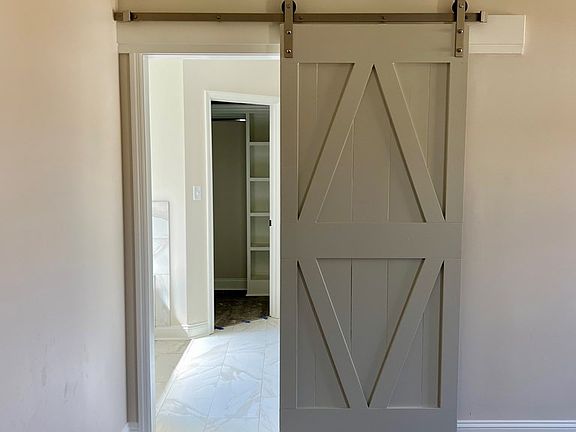 Luxurious primary suiteStainless steel appliancesCharming barn doorTwo walk-in closetsTiled walk-in showerSpa-like bathroomSpacious layout