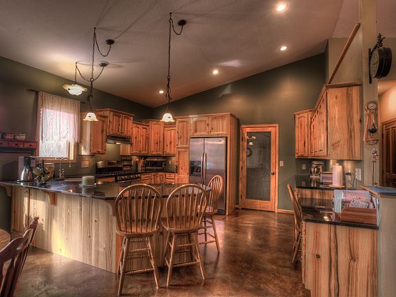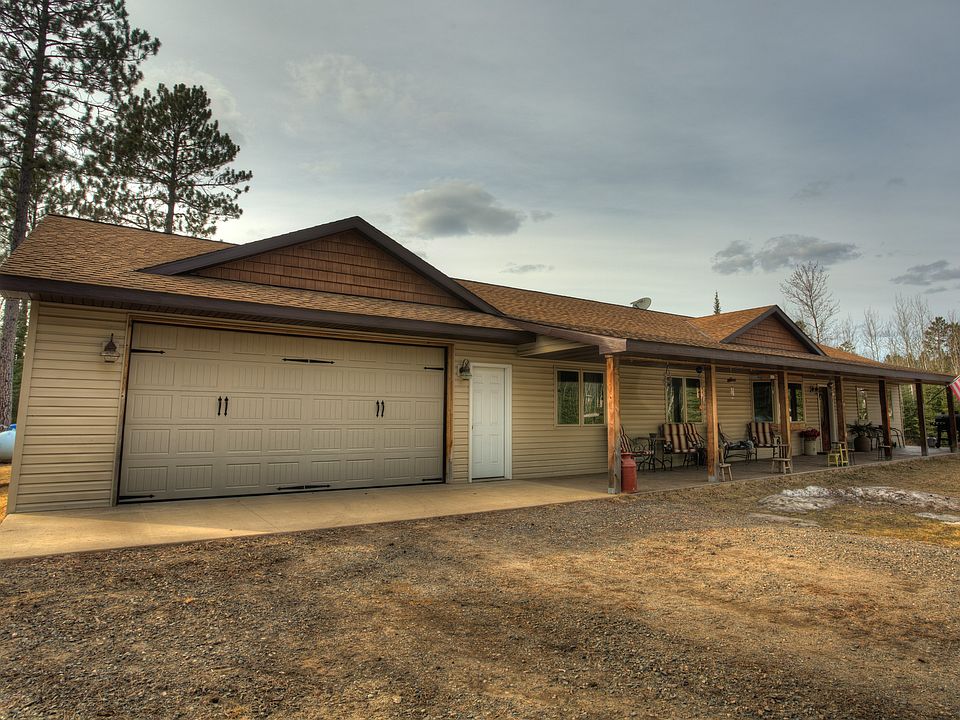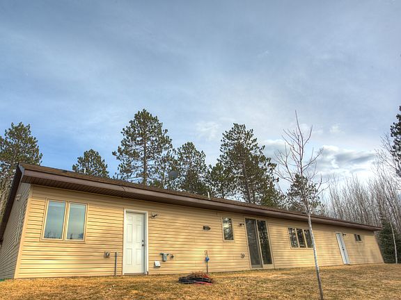 One level living granite counter tops vaulted ceilings 9ft walls custom built thru-out oversize 3 car garage 2 types heat wood boiler and gas forced air custom lighting stained concrete floors 660 ft of Ely Creek 2 different road access points hilly slope land and trees over 100 ft tall white pine and red pine birch ash and aspen with 5 other pine species wildlife abounds