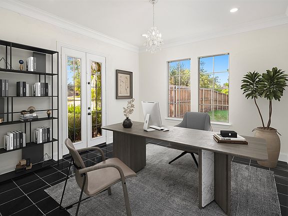 Sparkling poolDedicated officeExpansive backyardTree-lined backdropTranquil water featureUpdated spa-like primary bathroomLush grass