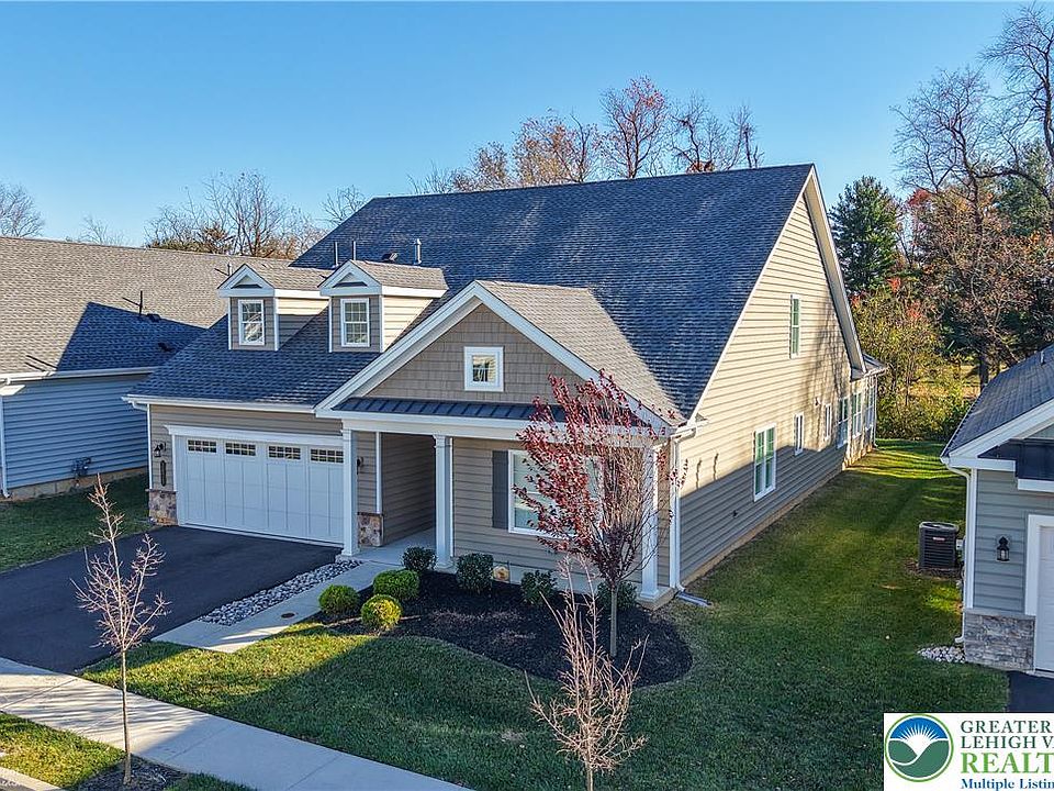 Premium tree lined gold course lot! This single home is offering secluded privacy as you relax on the screened in back porch with your morning coffee or evening cocktail. Enjoy low maintenance living and resort style amenities in this much sought after community. You'll find an open floor plan that has been meticulously maintained, with gleaming floors, cathedral ceiling, gas fireplace all visible from the white gourmet kitchen with 48" cabinets, granite tops & island, stainless steel appliances and upgraded finishes and ample cabinetry. The master bedroom has tray ceilings, 2 walk in closets, a bath w/garden tub and dual vanities. The 2nd bedroom is just across the hall from the guest bath. The laundry comes with a utility sink and the large capacity washer and dryer. Your HOA covers the club house, sports bar, club room, heated out door pool & spa, pickleball, tennis, golf simulator & fitness rooms, lawn maintenance and snow removal. Truly a move in ready home and tastefully decorated.