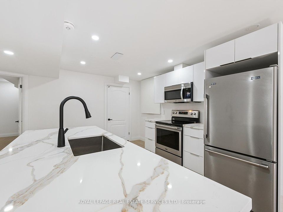 This brand new legal, modern apartment offers a stylish kitchen complete with quartz countertop island, stainless steel appliances and a convenient pantry for extra storage. The open concept layout boasts aspacious living room with pot lights, seamlessly connected to the kitchen for a bright, welcoming feel. The contemporary bathroom features a sleek glass shower enclosure. The generous bedroom includes a double closet. Additional storage is available with a foyer closet. Enjoy the abundance of natural lightthrough the unit plus the convenance of an en-suite full size washer and dryer. Ideally located in asought-after Lisgar neighbourhood, close to shops, parks, schools, GO station, and all essential amenities. Rent includes all utilities except internet.