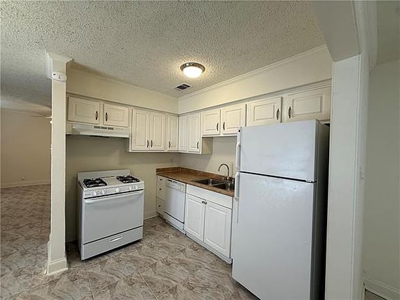 Single-family house for lease featuring 4 bedrooms and 2 full bathrooms. It has a 2-car driveway and a large backyard. There are hook-ups for a washer and dryer. The kitchen does have a refrigerator and a dishwasher.
