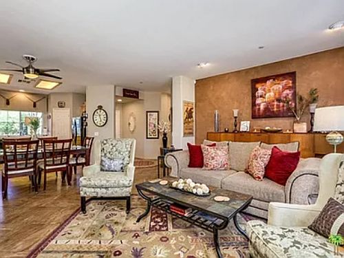 Welcome to 3872 Mission Peak!! Best Looking Tierra Linda Floor Plan on the Market in the Lovely Gated Community of Mountain Gate, Palm Springs. This 1630 S.F Floor plan offers you 3 Bedrooms and 2 baths with gorgeous panoramic mountain VIEWS, along with a view of the World's famous Aerial Tram. Also included for ultimate entertaining is an Above Ground spa perfect fit for 4 People which is a crowd pleaser! Interior features such as 9ft high ceilings, an open floor plan with custom designer painted walls. Large kitchen island with appliances. Custom Top of the Line Window Treatments! Upgraded Large Tile Flooring and a fabulous Designer Fireplace. Large Master Suite opens to the backyard, has walk in closet, and a private bath. Bedrooms Two and Three are the perfect size for family or guest, and adjacent to a full bath with a shower/tub combination. Nice size backyard! Attached two car garage. Home comes unfurnished. 3 community pools/spas, 2 tennis courts, basketball court, playground,BBQ and Gazebo area. 1 year lease or longer.