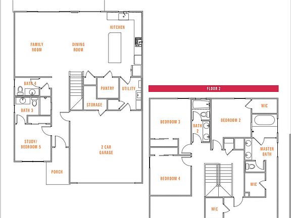 The Cashmere: This two-story layout wraps comfort and capability into one. With 5 bedrooms, 3.5 bathrooms, and 2,704 square feet, the Cashmere includes a downstairs guest suite with private full bath, plus an open living space and feature-packed kitchen granite countertops, apron sink, pot filler, and upgraded lighting throughout. Upstairs, four more bedrooms including the primary suite offer room to stretch out. Includes a 2-car garage.