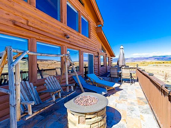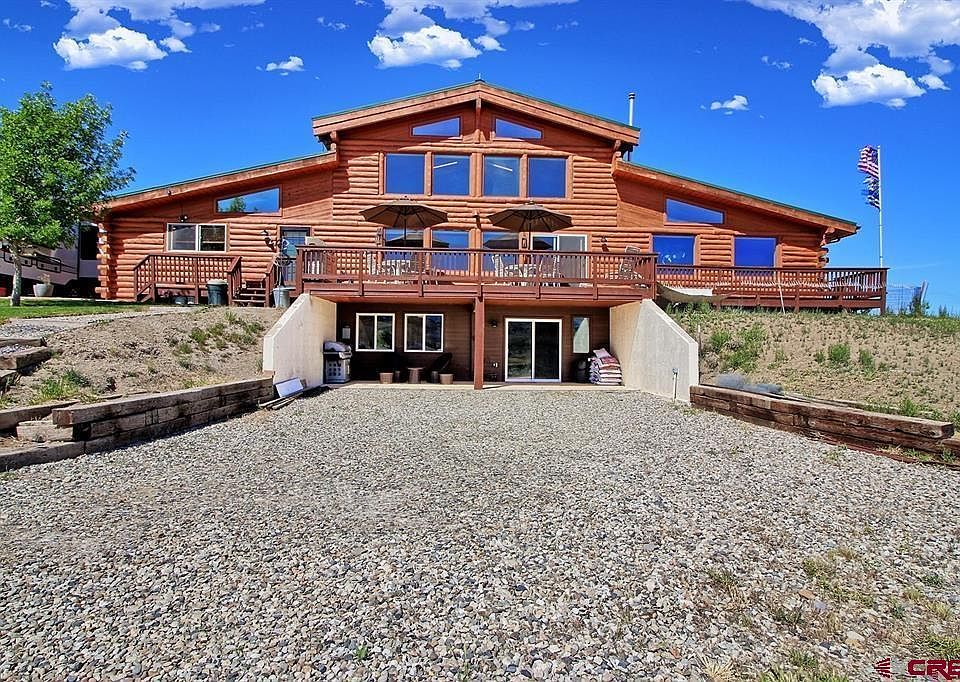 Home, Home on the Range where the western meadowlarks and red-wing black birds serenade you all day and the views never go away! Situated on 36.1 acres at the Base of Lands End and Mt. Lamborn this truly one of a kind Log Home and property will give you the Western Colorado experience that you desire! A massive window package captures the awe-inspiring mountain views and its changing seasons! Multiple living levels with 4 bedrooms and 6 bathrooms and a basement suite with its own entrance. Each bedroom has its own bathroom. Vaulted great room with attached full bar and 1/2 bath for entertaining. Loft office area with inspiring views, wet bar, and 2bedrooms and 2 baths. Gorgeous new oak hardwood floors and beautiful tongue and groove walls and ceilings throughout give you that lodge like atmosphere. Recent tasteful remodels were done to the kitchen and the basement suite. Comforted in the Summer with ductless mini-split cooling and in the winter with in-floor radiant heat and 2 pellet stoves. 36x38 barn/shop with new concrete floors, covered stalls, and a large attached fenced arena. Good irrigation water to give you the potential to green it up more and maintain the beautiful ponds that attract a myriad of wildlife and migratory birds. Nice private fenced area with plenty of room for your pets. Very little covenants allow for free use of the property. HOA is only for water and road maintenance. So many different options with this versatile property. Located 10 minutes from Hotchkiss and its amenities.