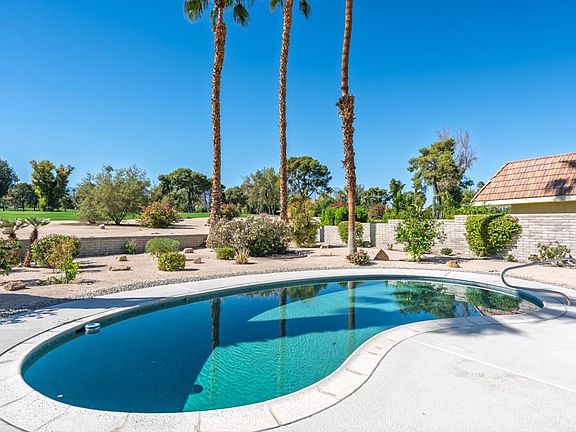 Where else can you find a condo with its own private pool and spectacular south-facing golf course views at this great price? Perfectly positioned on the course with only one attached neighbor in this duplex configuration it feels more like a home than a condo. Designed in the late mid-century era, the open & inviting floor plan features soaring ceilings, abundant natural light, & a seamless flow from the great room with its custom built-in to the bedrooms. The spacious primary suite is thoughtfully separated from the 2 guest suites, all with ensuite baths, offering comfort & privacy for owners & guests alike. Bedrooms feature large walk-in closets, and there is a large indoor laundry room.The covered patio overlooks the pool, low maintenance desertscape yard, the wide fairway, mountain views and plenty of hard surface areas for entering outdoorsAvondale is now under exciting new management and the course looks great.. It continues to build on its legacy as one of the desert's friendliest clubs. Members enjoy championship golf on a beautifully maintained course, along with tennis, pickleball, fitness & a full calendar of social gatherings and a beautiful newly remodeled clubhouse. Make this your personal retreat in one of the desert's most welcoming golf communities.
