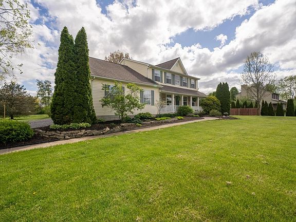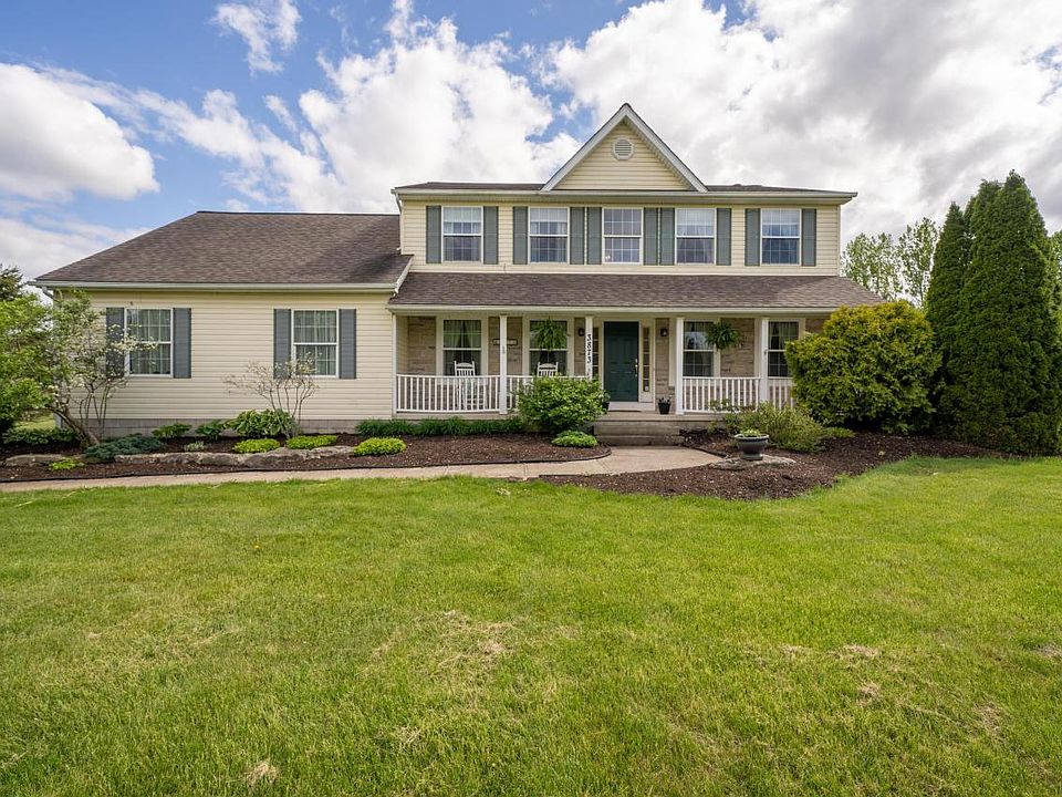 A private road welcomes you to this 3 bedroom, 2 full and 1 half bathroom home sitting on 1.2 acres. The light filled, flowing floor plan offers an open kitchen and eating area with a desk and built-ins. You will find two gas fireplaces, one in the family room and the other in the finished lower level. The owner suite features a large walk-in closet and en suite double vanity bath with Jacuzzi tub. The second and third bedrooms are spacious, offer walk in-closets and share the updated marble hall bath. The deck is made for relaxing and entertaining, overlooking mature trees and landscaping. New HVAC and freshly painted, just move in. Near the Scioto River and easy access to 270.