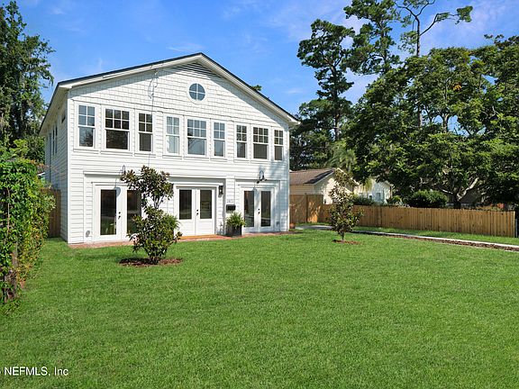 PRICE IMPROVEMENT! Completely restored 4BR/3BA Avondale home—taken to the studs and rebuilt with all-new systems and finishes. Historic 1949 character with the quality of new construction. Exterior: new siding and shingles in Colonial Revival style, framed by twin magnolias, new concrete driveway, fresh landscaping, and fully fenced backyard. Bright open floor plan with all-new windows and doors. Kitchen features shaker cabinetry, quartz counters, custom range hood, stainless appliances, large island, and ample storage. Upstairs, the primary suite includes a sunroom sitting area, multiple closets, and a luxurious bath with soaking tub, marble shower, double vanity, and water closet. All baths feature marble tile, vanities, and elegant fixtures. Major updates: 2025 HVAC, plumbing, electrical, and water heater; 2022 roof with new gutters; all-new LVP flooring, lighting, and hardware. Quiet, friendly Jean Street minutes from Boone Park, Avondale town center, and the St. Johns River.