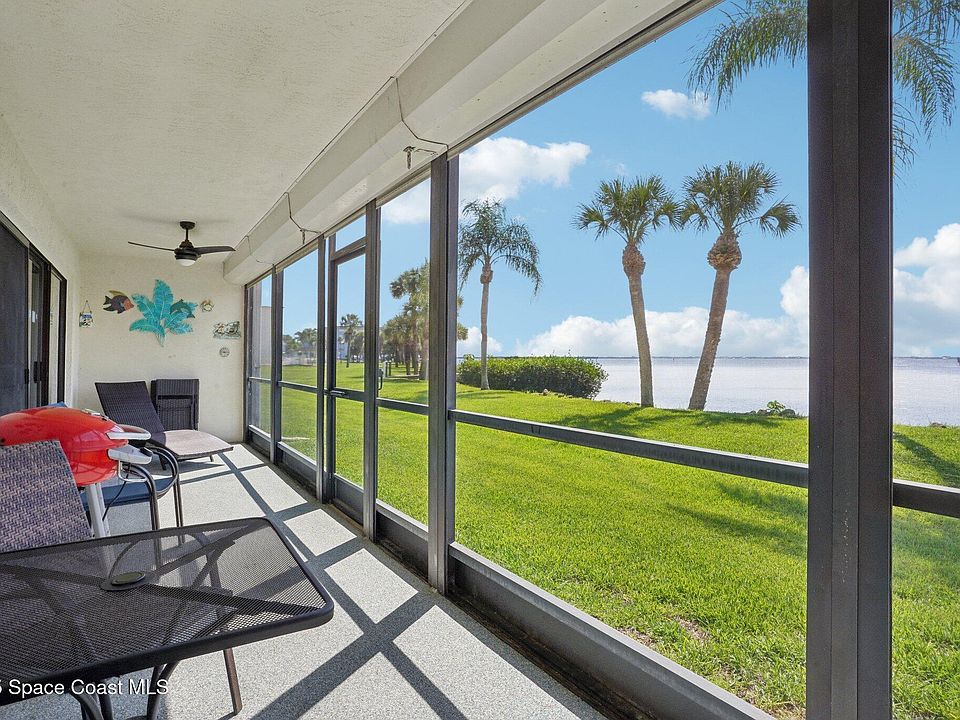 Imagine waking up to sparkling Waterfront views on the Banana River, where every day feels like Paradise. This direct Riverfront 1st-floor Cocoa Beach condo offers carefree, fully furnished living—no stairs, no elevator & your garage just steps away. From the moment you enter, water views fill the open floor plan through oversized sliders to your private balcony. Freshly updated with neutral paint, vinyl wood-look floors, remodeled kitchen with granite, cabinets & stainless appliances. Both baths are updated, including the owner's suite with walk-in shower. Holidays are magical—decorate your balcony & gather with friends to watch the dazzling Christmas Boat Parade. Enjoy sunrise beach walks, surfing, kayaking, paddleboarding, fishing from the dock, or relaxing at your riverside pool. End each day with breathtaking sunsets & a cold drink. With festivals, art shows, Surfing Santa's & boat races nearby—your dream waterfront oasis awaits! AC 2021 & hurricane shutters. AND NAVIGABLE WATERS HERE! For the Boat Lover, a Marina right next door. Dock your boat there & cruise out to all the favorite local spots! Do you love to walk, go out and explore the area, you can walk everywhere from here, Great Restaurants, Shopping, Beach, Museums, Medical Facilities & so much more! There is so much life on the River here, Birds soaring, dolphins playing & fish jumping. Are you relocating for employment centrally located easy commute to Port Canaveral, PAFB, KSC, NASA, All Aerospace Companies, Airports, Brightline Train & New Hospital Facilities. If you are loving the idea of living on the Space Coast you will see Rocket Launches from your backyard too! Get ready to live your Dream!