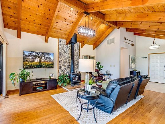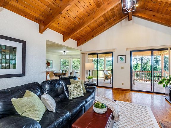 Set upon nearly 13 acres with dozens of species of fruit trees and ornamental plants, this special 3 bedroom 2 full bath is an area gem. Upon entering the home, your attention is drawn upwards to the soaring exposed beam ceilings in the warm and welcoming living room. Approach further and your gaze falls just outside to the impressive view out the private back deck. Many upgrades over the past few years including the addition of a generator with transfer switch, HVAC with Wi-Fi thermostat, and a neutralizer treatment system for the water; to name a few. Wake up to the sunrise each morning from your master suite with pleasant views out each window and its own access to the exterior for a breath of fresh air and the aromas of blooming dogwoods and magnolias. Storage on the property is abundant within the 3 car attached garage with new automatic openers and the detached metal storage unit. Just one mile from all the amenities of the town of Georgetown.