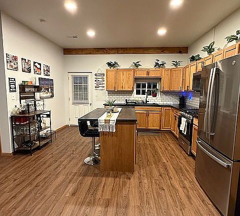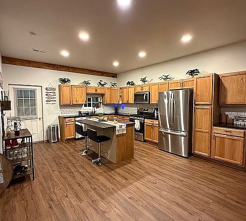 Large kitchen area with a lot of storage. New appliances which include fridge, microwave, oven, dishwasher, washer/dryer, and tankless water heater.