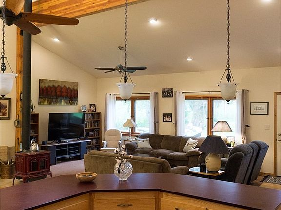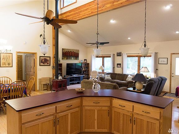 Why build it's all here. Quality custom 3 bed, 1-3/4 bath home on 6.2 private acres (m/l). High vaulted ceilings, great room with clerestory windows provide great light. Custom cabinets & dual oven plus country sink. Bamboo flooring in kitchen & dining room. Covered front & rear porch. Master bedroom features jetted tub & built-in closet. Large barn & wood shop. Well established garden area & 24 x 16 greenhouse. 100 ft river frontage. 2 car detached garage + 2 room in back. 3 vehicle carport.