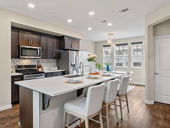 Experience Silicon Valley living at its finest in this nearly-new modern 3-bedroom townhouse built in 2019. Enjoy a bright, open floor plan perfect for today's lifestyle. The entry level offers a 2-car garage and a private bedroom suite, ideal for multi-generational living or income potential. The main level's stylish kitchen and living areas flow seamlessly, creating a perfect space for gatherings. Relax on the private balcony. Two upper-level ensuite bedrooms provide ultimate comfort, including a master suite with a walk-in closet. Walk to top tech companies like LinkedIn and Samsung, with excellent schools close by. Easy access to Google, Apple, and more makes this a commuter's dream. A quick drive brings you to Costco, Walmart, Target and Ranch 99. This is the perfect blend of modern living and prime Silicon Valley convenience. Don't miss this opportunity to own a beautiful, modern townhouse in one of the most desirable areas in Mountain View!