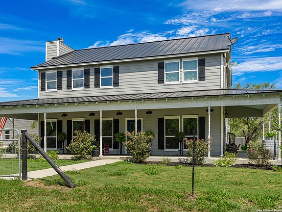 Welcome to this secluded country home on 9 acres in Jourdanton I.S.D.!!! This is a NEWLY BUILT home which features 4 bedrooms, 2 full baths, open floor plan, and barn that measures 28x50. This home will have plenty of features including quartz countertops in kitchen and bathrooms, with custom cabinets. Home is split throughout with carpet in the bedrooms, real wood in the living area, and tile in bathrooms/kitchen. This home has a covered patio on the back of the home which measures 38x11, with an amazing v